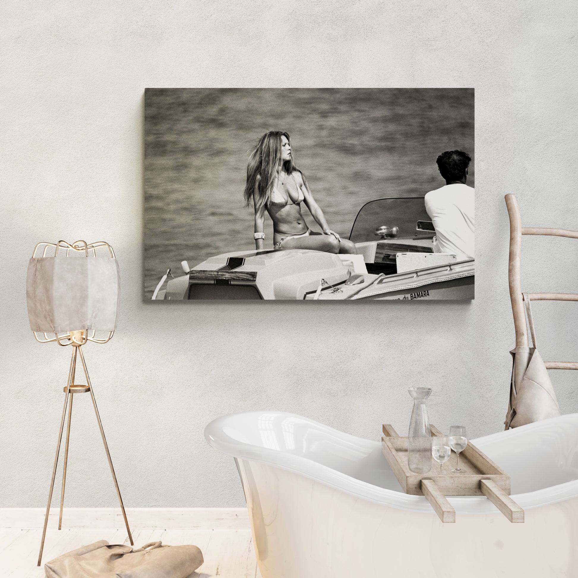 Brigitte Bardot on the Madrague pontoon in Saint-Tropez in 1971 by Daniel Angeli. This shot evokes a lifestyle that is both glamorous and simple, a timeless testament to Bardot's free spirit and a photo that enhances any interior.