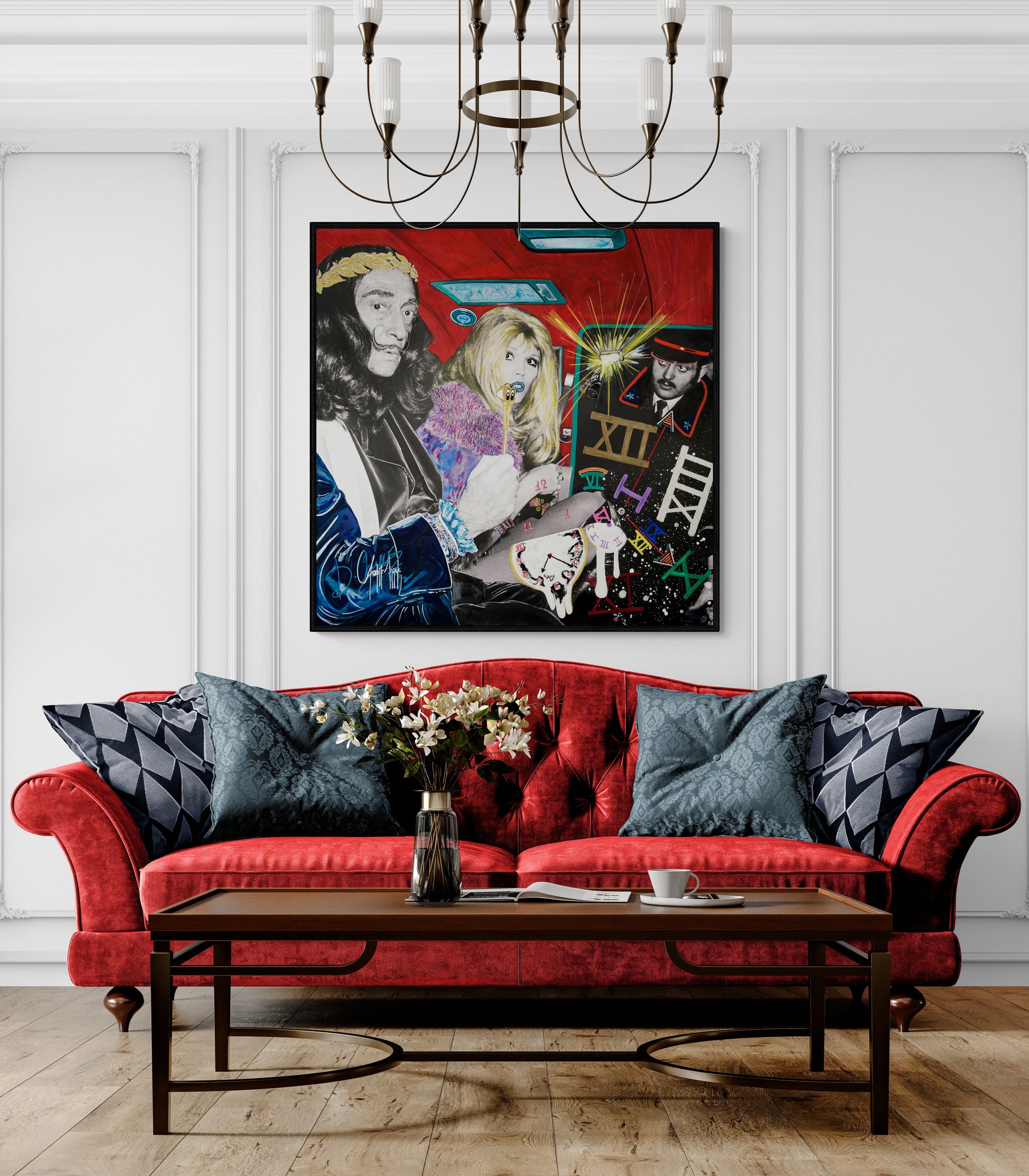 Check out this artistic collaboration between Charlotte Angeli and photographer Daniel Angeli, capturing the eccentricity of Salvador Dali and Amanda Lear. This piece, in square format 100x100 cm, is framed in a black metal American box.