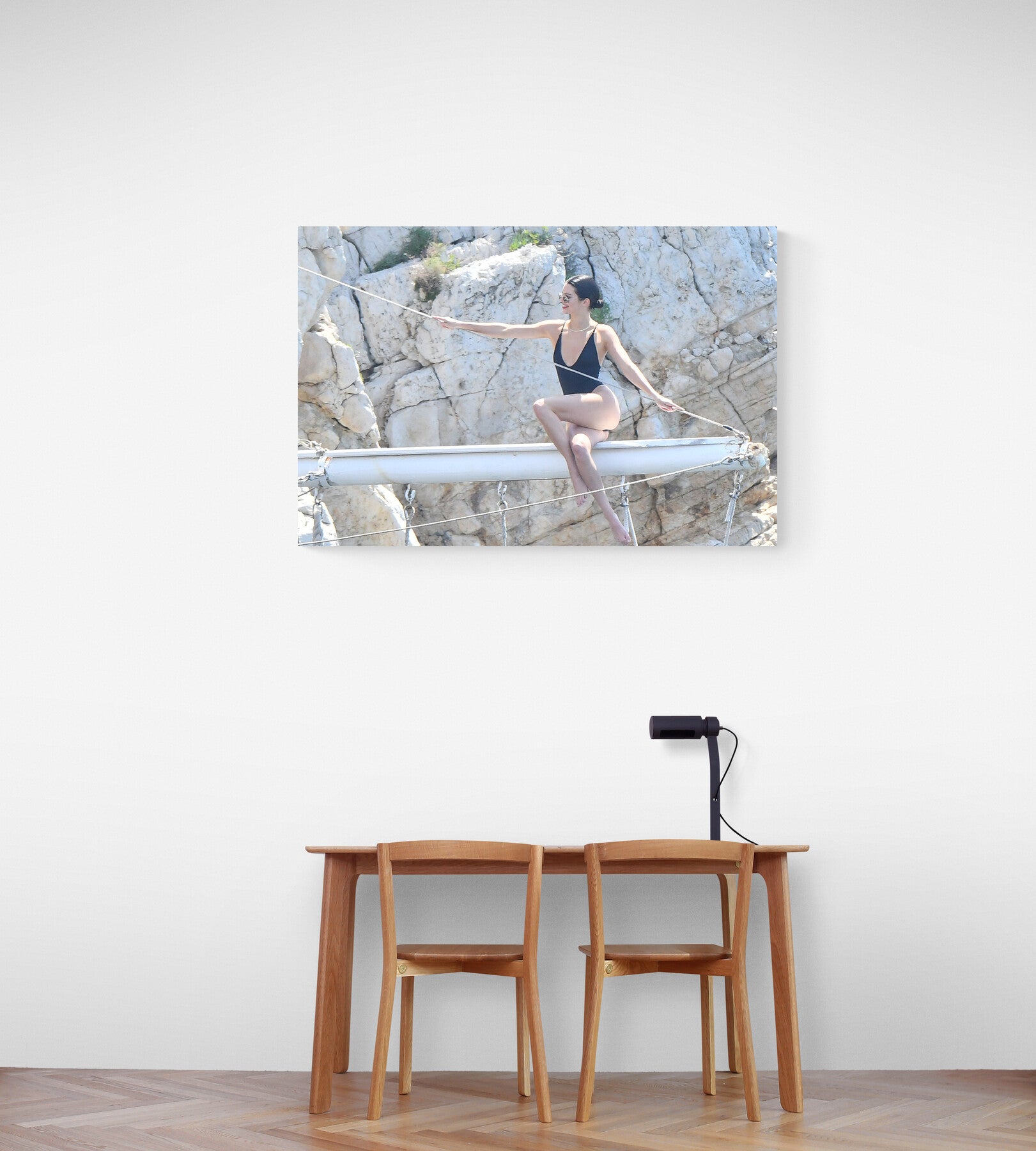 Relaxing moment for Kendall Jenner in May 2018 on the sidelines of the Cannes Film Festival. Its silhouette against the Mediterranean landscape creates a living work of art, ideal for adding a dimension of calm and natural beauty to any living space.