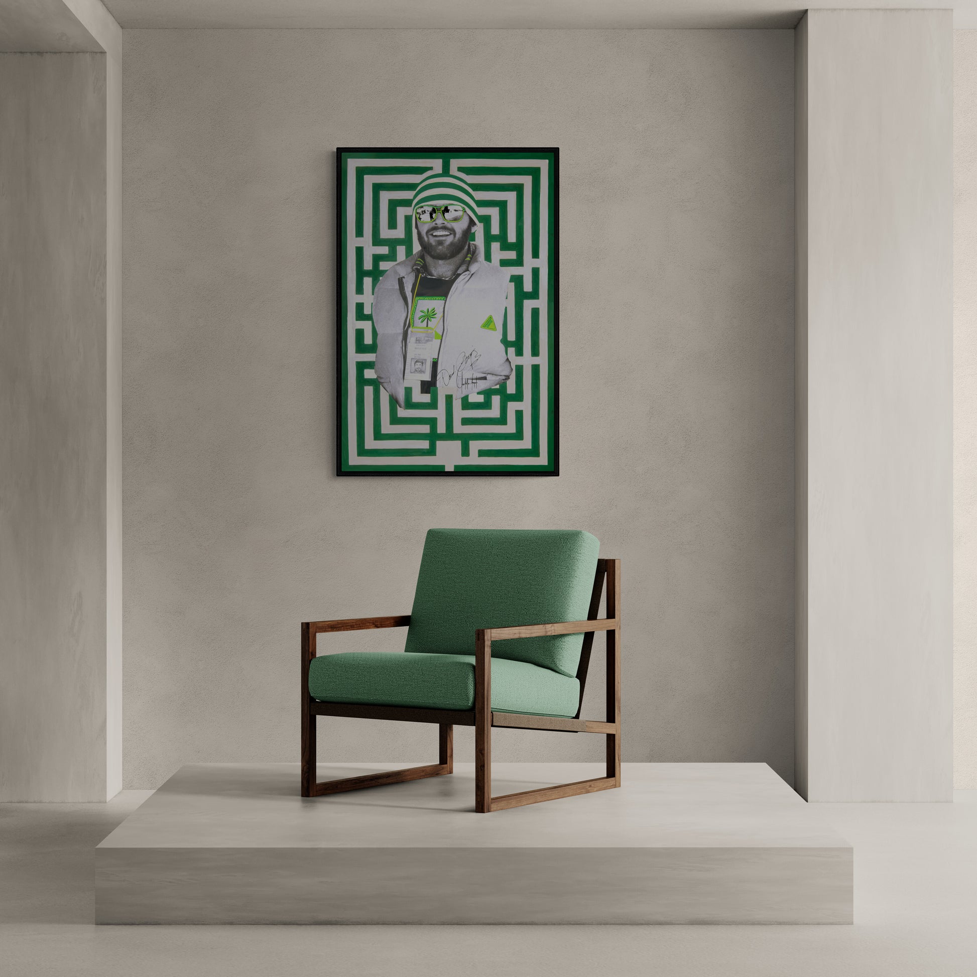 The original, behind-the-scenes photography is enhanced by bold paintings by Charlotte Angeli. The green maze surrounding the iconic figure invites a deep and symbolic visual exploration.