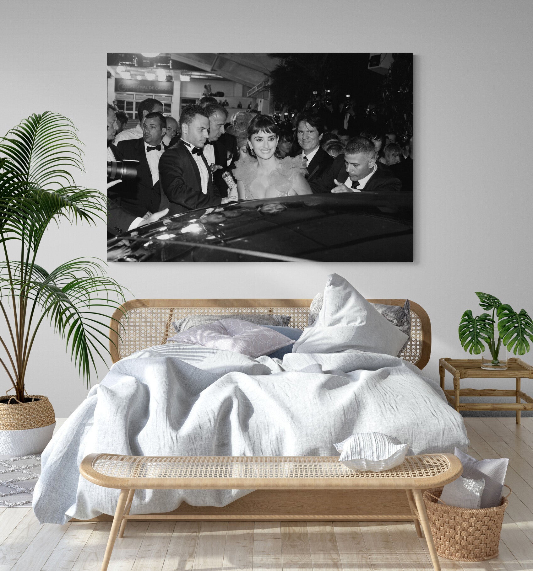 Penelope Cruz leaving the screening of "Pirates of the Caribbean: On Fountain of Youth" at Cannes in 2011. This photo is a symbol of the charm and energy of the festival, a capture of the thrill and excitement that surrounds the magic of the big screen. A decorative addition to any space, inviting the elegance and prestige of the Cannes Film Festival into your home.