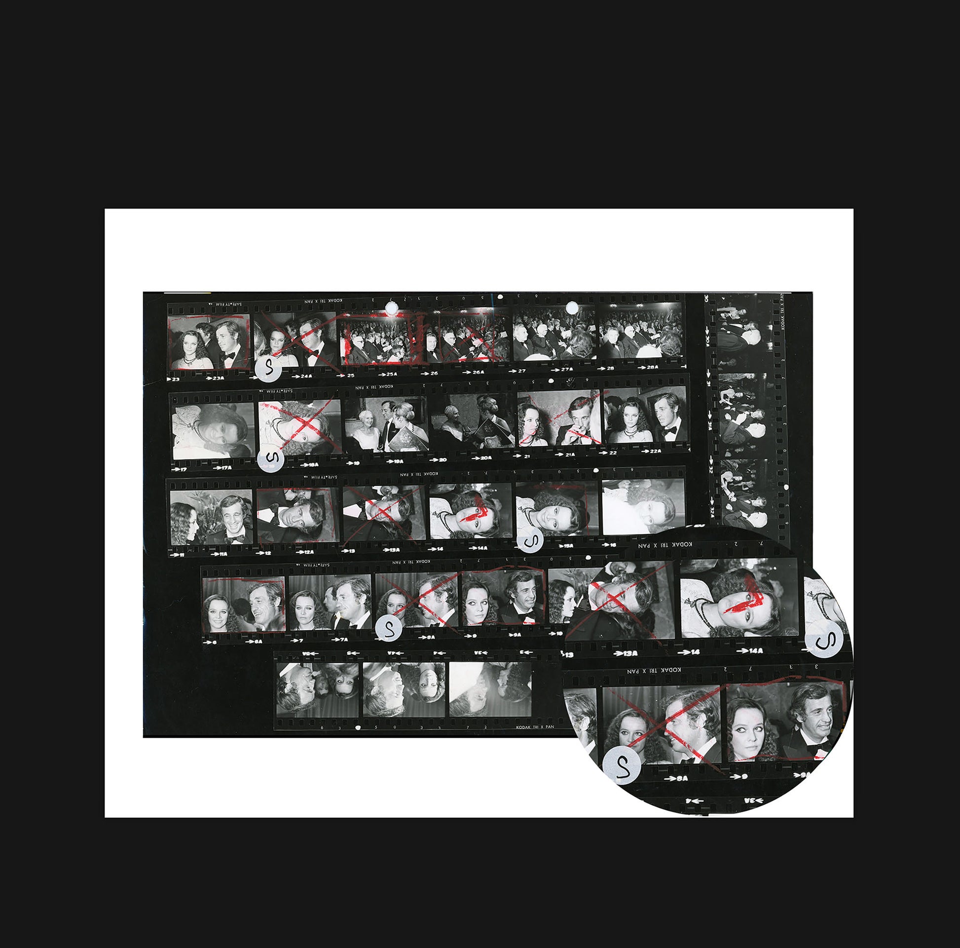 Contact sheet: Belmondo, Antonelli and Jean Gabin, 1974, Paris