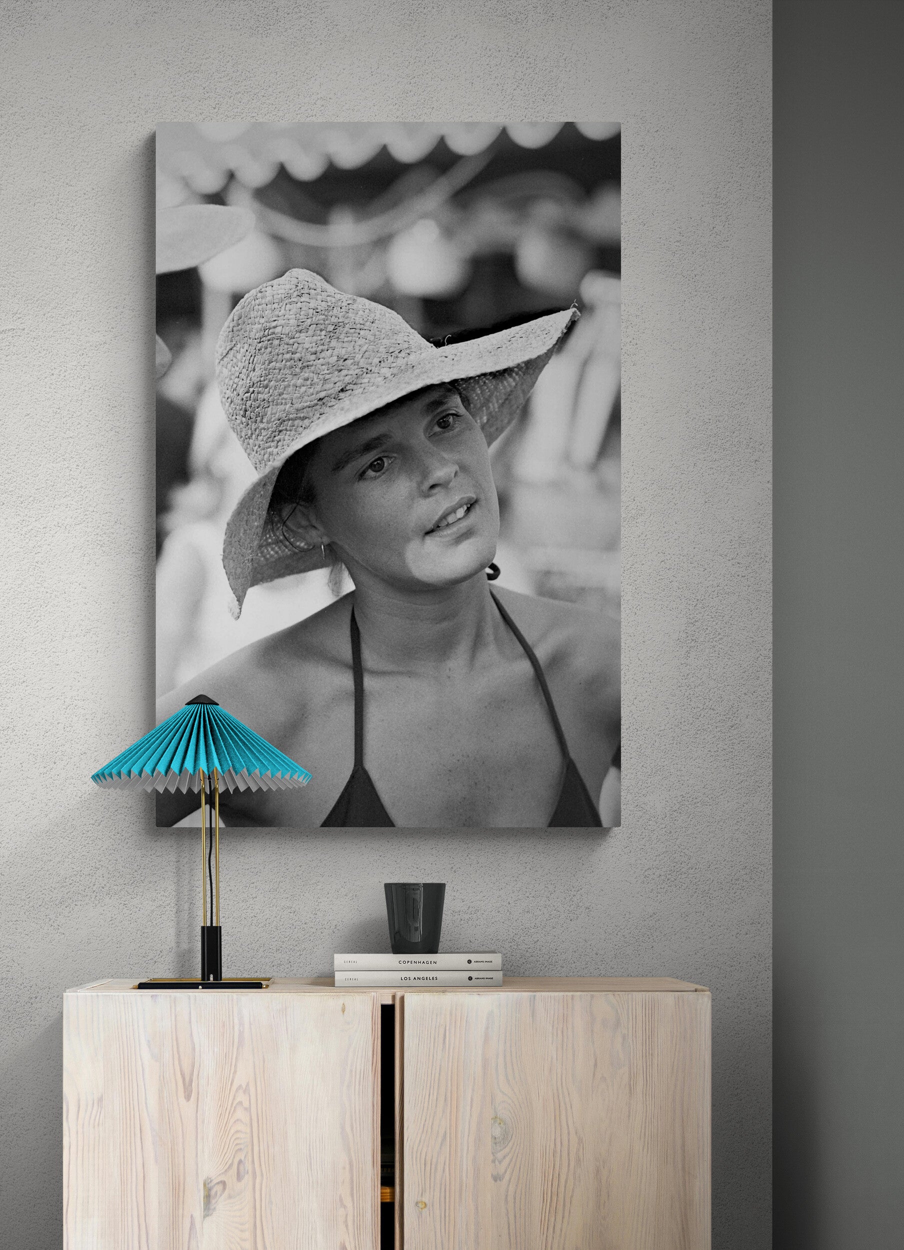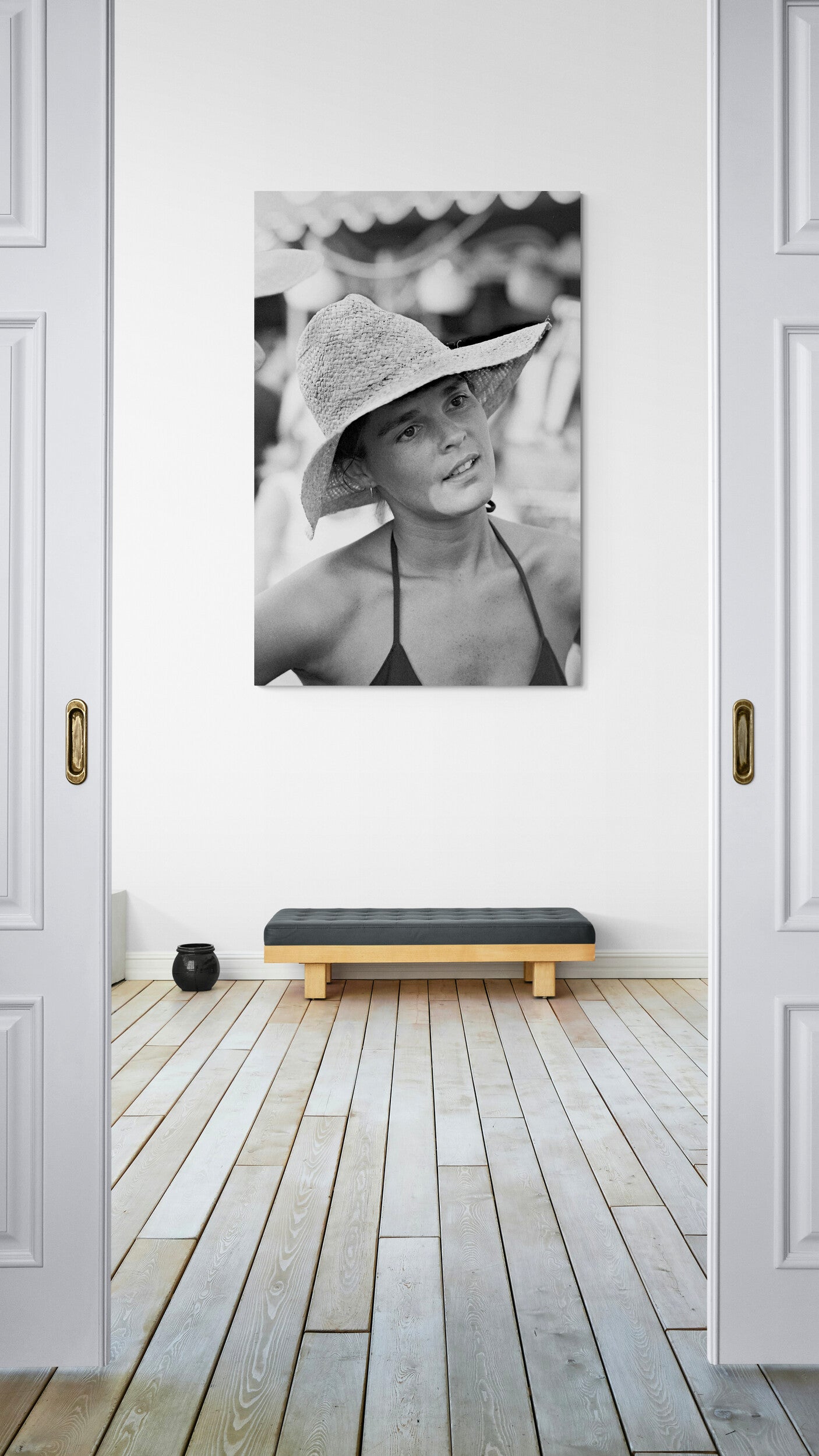 Capturée par Daniel Angeli, cette photo d’Ali MacGraw dégage une élégance naturelle et une fraîcheur intemporelle. Deux ans après le succès de "Love Story", elle est devenue une icône. Avec un chapeau de paille effiloché qui ajoute une touche bohème à son allure, et un maillot de bain simple qui met en valeur l'élégance décontractée, MacGraw incarne l'esprit libre des années 70. Cette image intemporelle parle d'une époque de simplicité élégante, idéale pour les collectionneurs cherchant à capturer la lumière et la beauté naturelle d'une star en dehors des paillettes d'Hollywood.