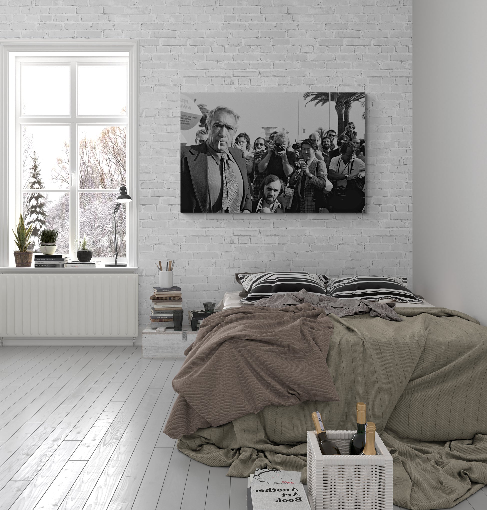 Anthony Quinn lors de la présentation du film "L'Héritage" au Festival de Cannes en 1976. Entouré par un essaim de journalistes et de caméras, Anthony Quinn, cigarette en bouche, offre une image typique de Cannes et de l'époque. La présence imposante de l'acteur, contrastant avec l'agitation de la foule derrière lui, crée une composition dynamique qui raconte l'histoire du charme intemporel de l'acteur et du buzz perpétuel de Cannes. Une photo de Daniel Angeli qui parlera aux cinéphiles et collectionneurs passionnés par l'âge d'or d'Hollywood.