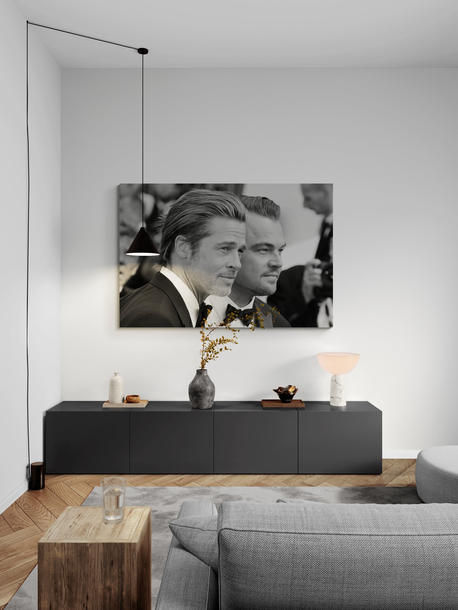 Leonardo DiCaprio et Brad Pitt, deux titans d'Hollywood lors de la montée des marches de "Once Upon a Time… in Hollywood" au 72ème Festival International du Film de Cannes en 2019. Cette photographie en noir et blanc saisit leur complicité et leur charisme indéniable. L'image reflète la stature de ces icônes du cinéma et leur contribution inoubliable à l'industrie, et apportera à tout intérieur une touche glamour incontestable.