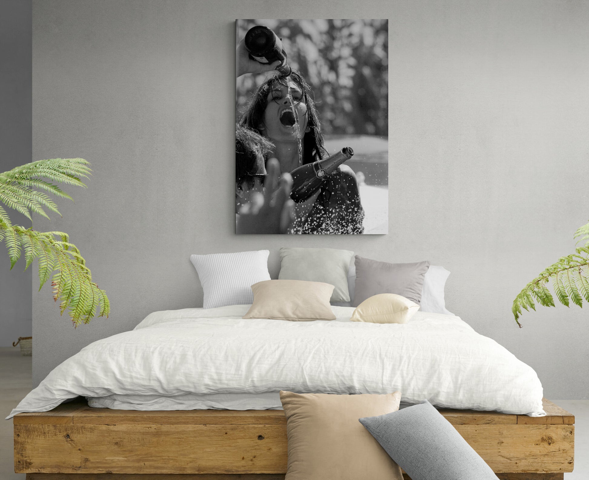 Cindy Crawford s'éclate à la Voile Rouge en 2005, une des plages les plus connues de Saint-Tropez. Cette photo rappelle l'insouciance des fêtes estivales mythiques de cette plage de Pampelonne, où les paparazzi pouvaient toujours compter sur des clichés aussi vivants qu'insolites.