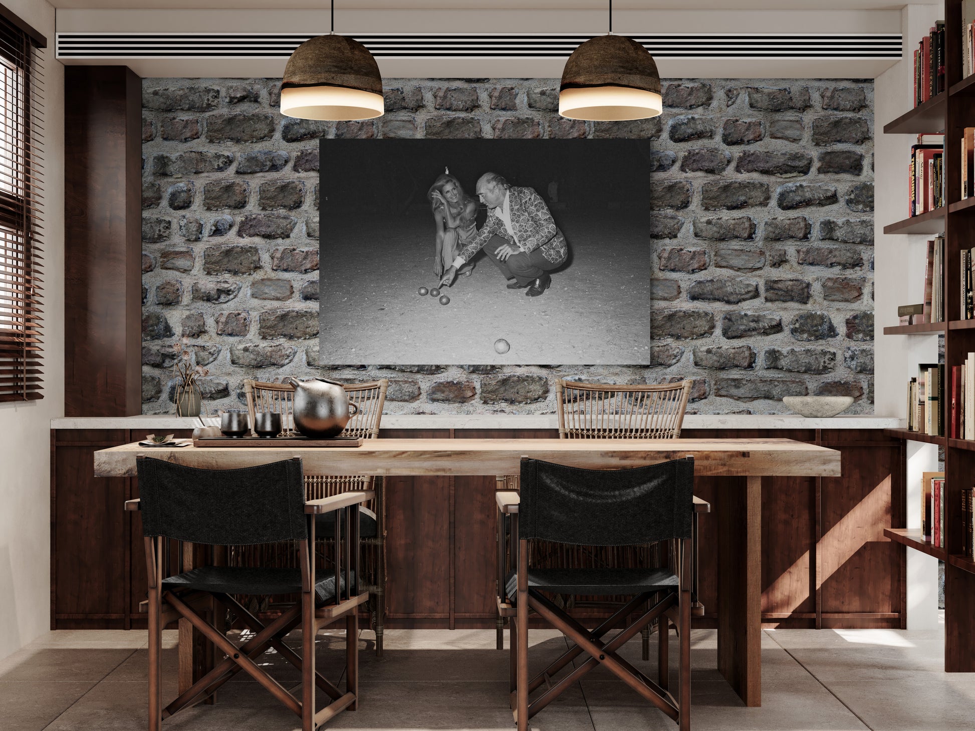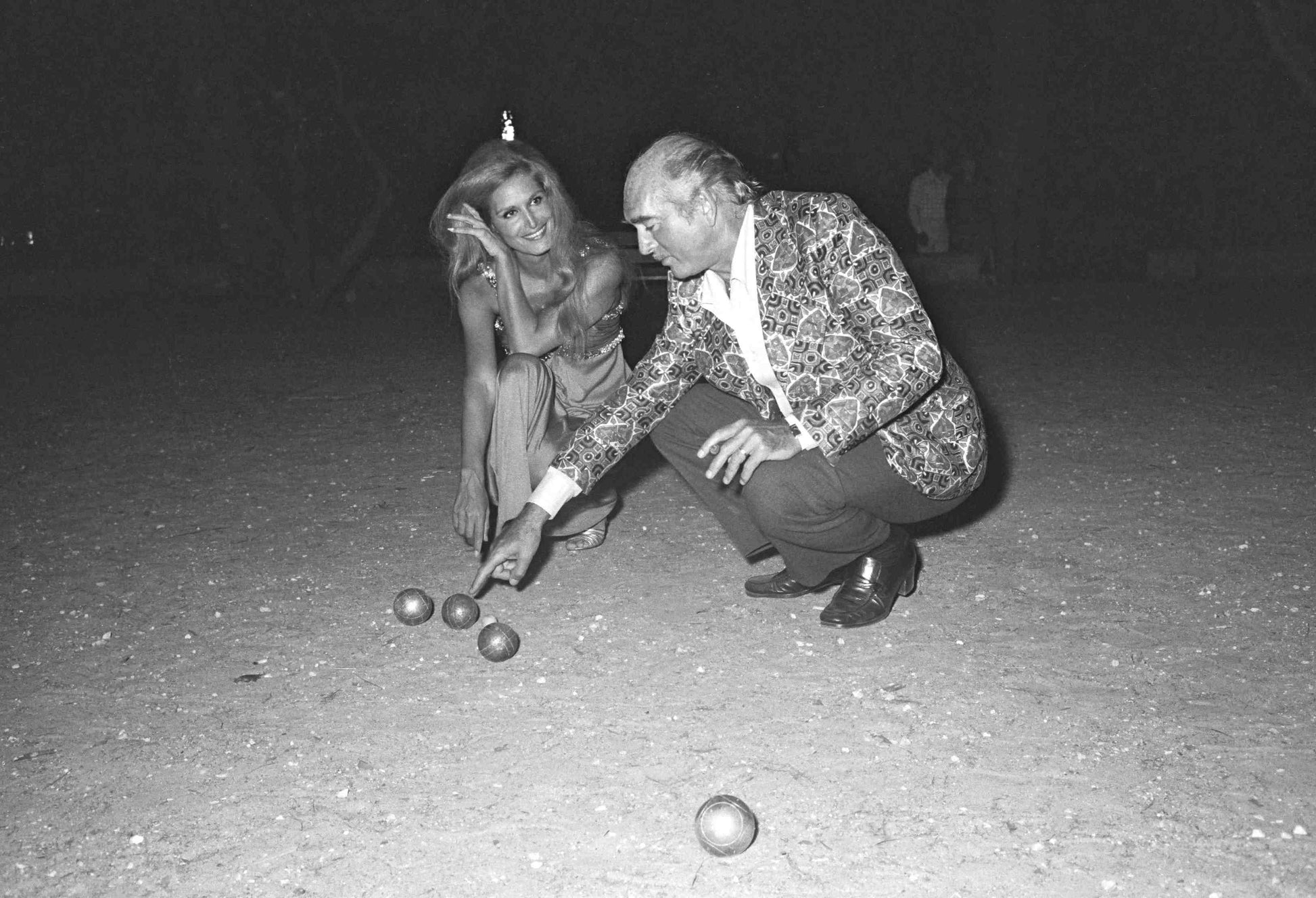 Plongez dans l'ambiance décontractée de Saint-Tropez en 1974 avec cette photo prise par Daniel Angeli. Dalida et le légendaire producteur de musique Eddie Barclay jouant aux boules sur la Place des Lices. Témoignage d'une époque glamour et insouciante.