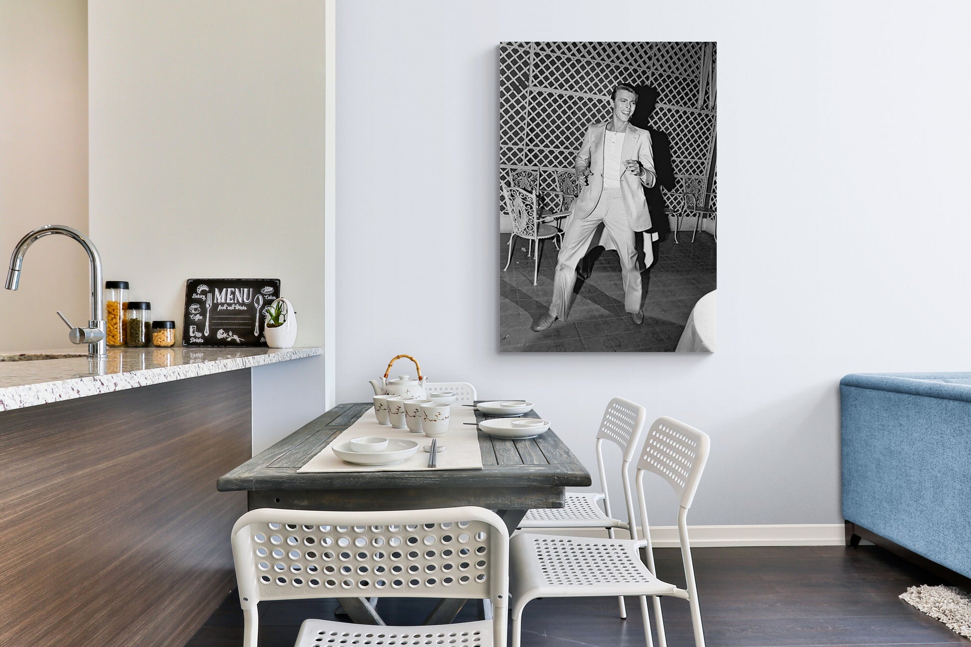 David Bowie en 1978 par Daniel Angeli. L'artiste danse sous les étoiles lors du prestigieux festival de Cannes. Cette image, un témoignage de la légèreté et de l'esprit festif du festival, offre un aperçu intime d'un artiste au sommet de son art et donne à tout espace un caractère joyeux et stylé.