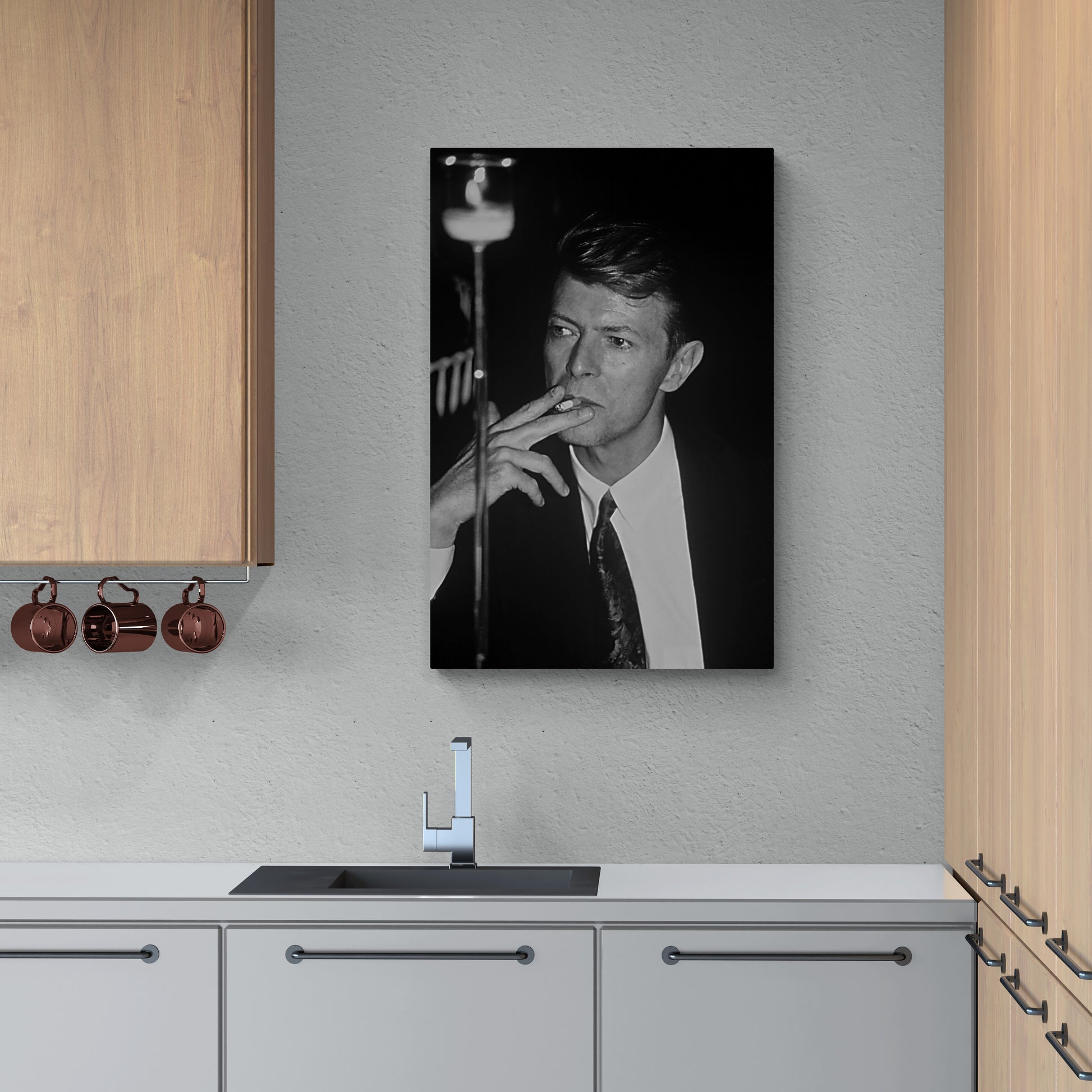 David Bowie, l'artiste caméléon, est immortalisé au Festival de Cannes en 1991 par Daniel Angeli. Sa pose iconique, cigarette en main, incarne le glamour. Parfaite pour ajouter une touche de classe et de vintage à tout espace.