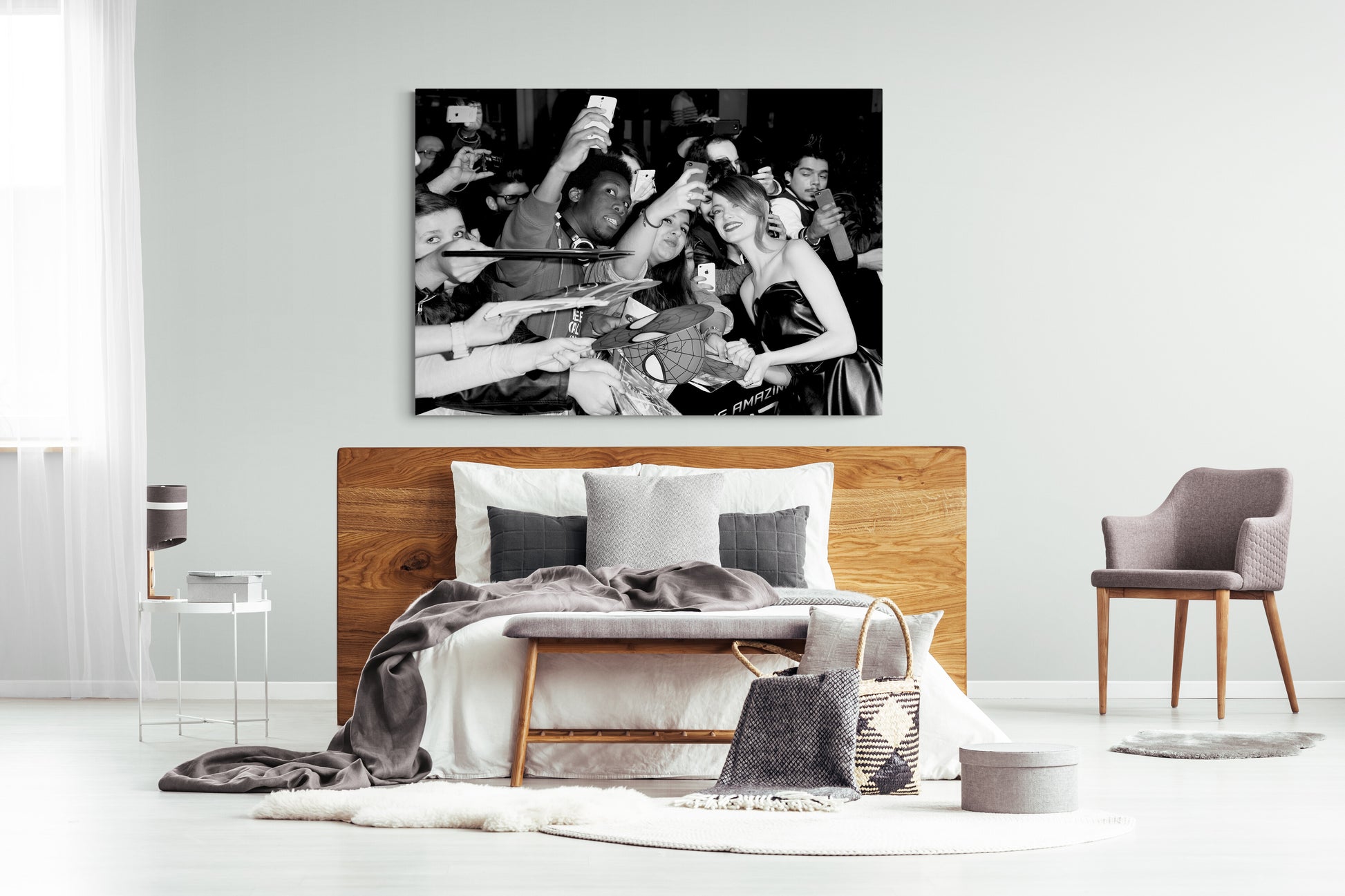 Immortalisée dans une marée de fans et de flashs, Emma Stone déploie son charme lors de l'avant-première parisienne de "The Amazing Spider-Man 2: Le Destin d'un Héros". Tandis que les smartphones s'élèvent pour capturer ce moment fugace, Emma Stone partage une complicité joyeuse avec ses admirateurs, un contraste saisissant avec l'effervescence environnante. Ce cliché en noir et blanc amplifie le glamour intemporel de la scène, capturant une étoile d'Hollywood dans son élément naturel : sous le feu des projecteurs.