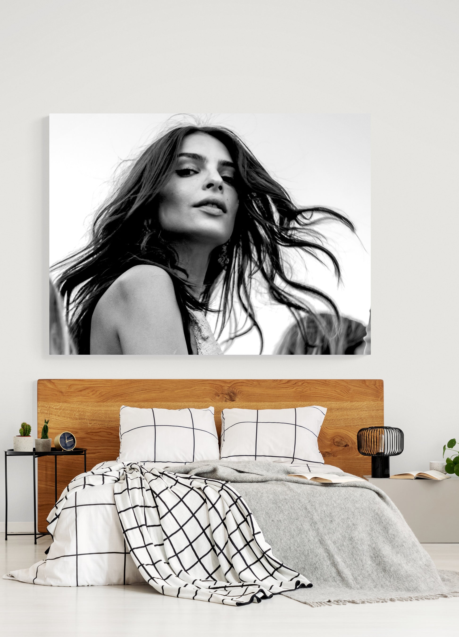 On adore ce portrait d'Emily Ratajkowski, connue sous le pseudonyme Emrata, capturé lors de la soirée Kérastase au Port Debilly à Paris en 2019. La photo dépeint la beauté naturelle et le charisme d'Emrata, avec ses cheveux tourbillonnants dans la brise légère, une incarnation de liberté et de spontanéité. Cette photo peut enrichir n'importe quel espace, ajoutant une incontestable dimension glamour.