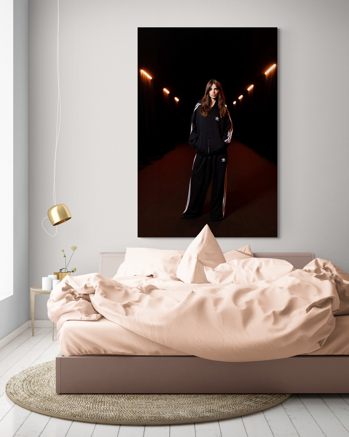 Emily Ratajkowski, aussi connue sous le nom d'Emrata, impose son style dans cette image prise lors du défilé Balenciaga Collection Femme Prêt-à-porter Printemps/Été 2023 à la Fashion Week de Paris en octobre 2022. Cette photo est un témoignage de l'influence d'Emrata dans le monde de la mode, incarnant une modernité sans effort. Son côté graphique peut donner du style à n'importe quel intérieur.