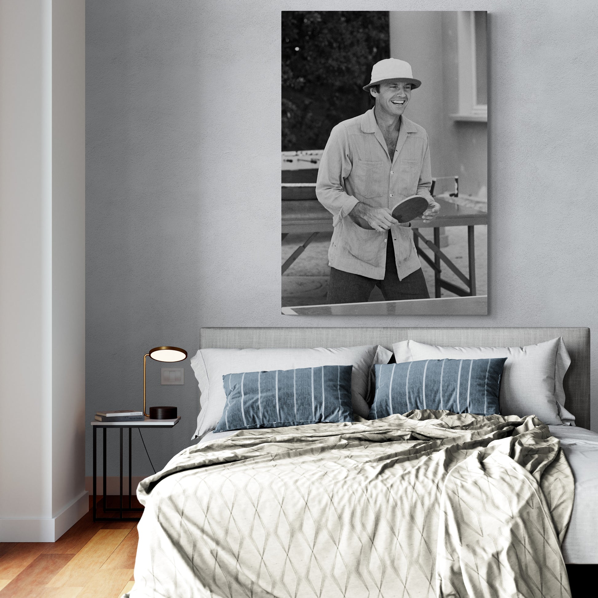 Partie de ping pong à Saint-Tropez en 1973 pour Jack Nicholson dans le jardin d'Eddie Barclay. Son sourire contagieux alors qu'il manie la raquette avec une aisance nonchalante donnent à l'image humour et décalage.