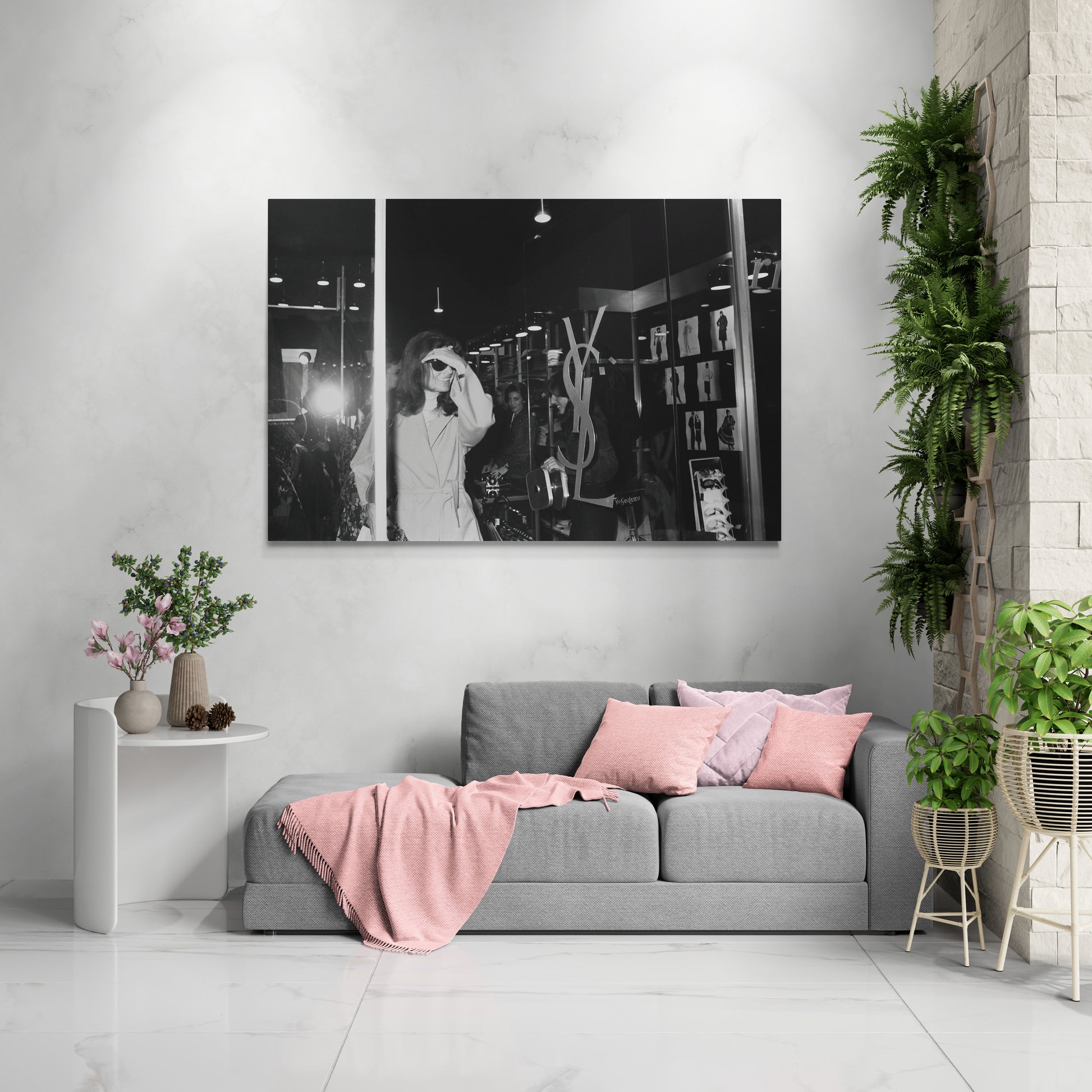 Jackie Kennedy sort de la boutique Yves Saint Laurent à Paris. Cette photo paparazzi saisit l'essence du glamour d'une icône américaine au cœur de la capitale de la mode. Sa silhouette intemporelle et son sourire énigmatique sous les lumières parisiennes nous rappellent pourquoi elle reste une figure légendaire de style et de sophistication. Prise par Daniel Angeli en 1974.