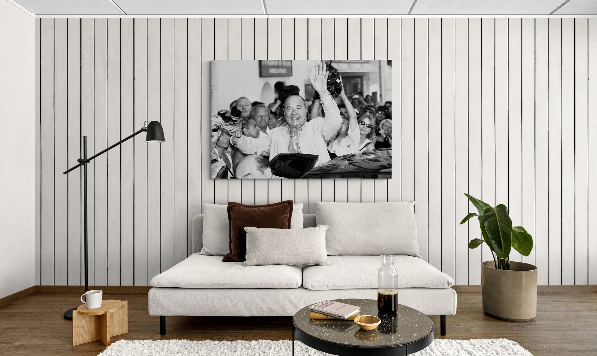 Capturez l'essence même du charisme politique avec cette photographie de Jacques Chirac saluant la foule à la sortie de la messe à Bormes les Mimosas en 2004. Cette image témoigne de la proximité chaleureuse que le président entretenait avec les citoyens français.