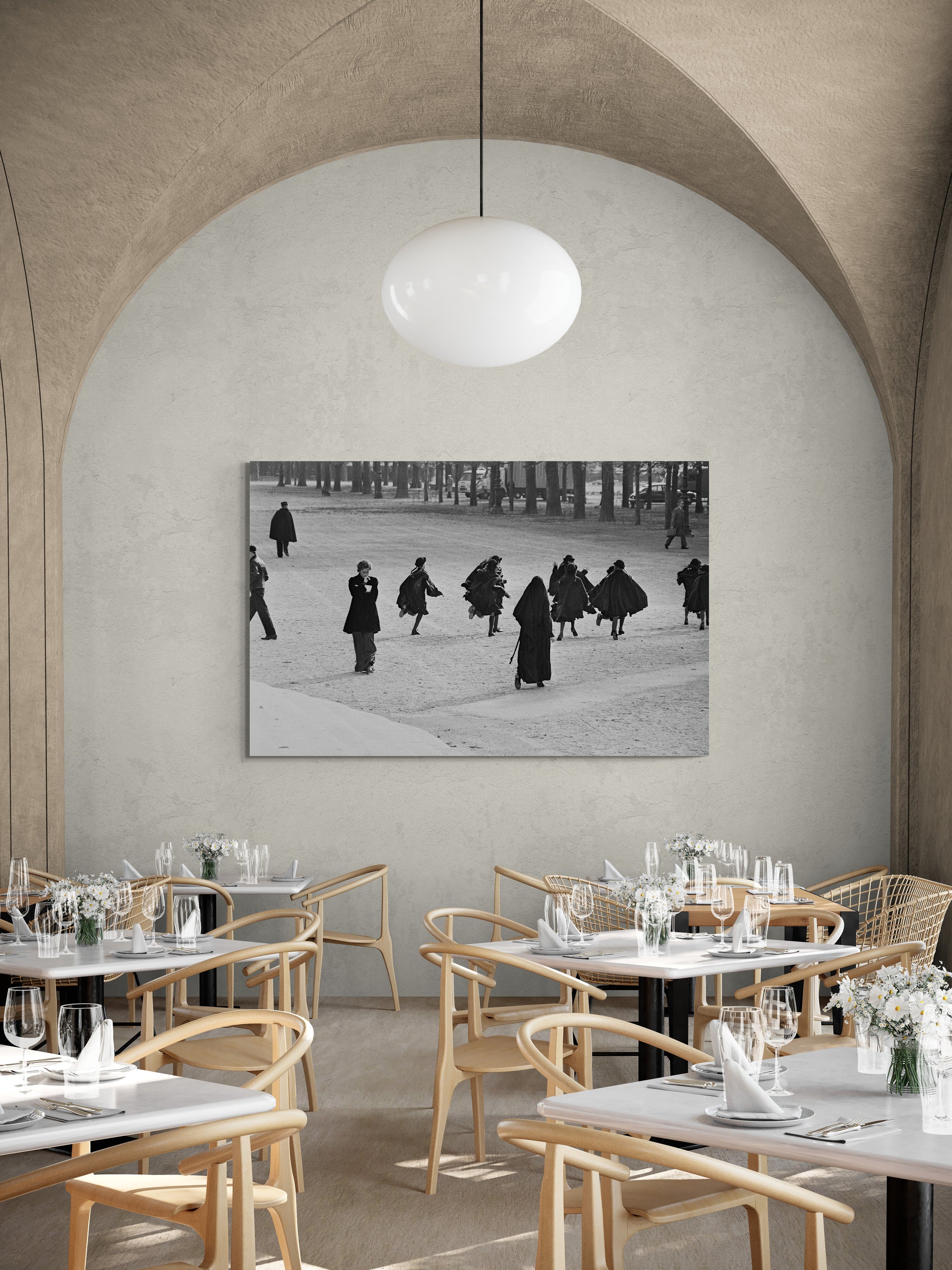 Dans la quiétude matinale du Jardin des Tuileries, l'objectif de Daniel Angeli capture une scène figée dans le temps avec Jane Fonda en plein tournage de 'Julia'. Imprégnez votre espace de vie d'une élégance classique et d'une aura de cinéma et ajoutez avec cette photo une touche de chic à votre décoration !
