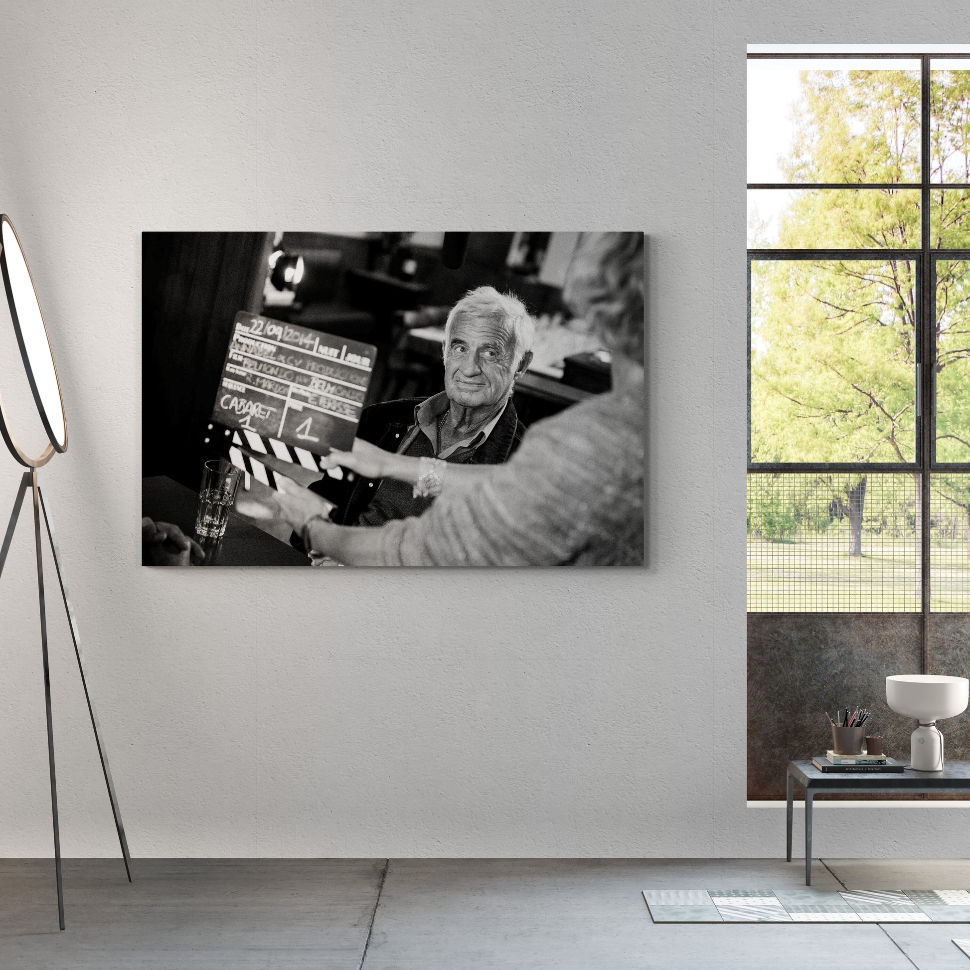 Le charme indémodable de Jean-Paul Belmondo brille à nouveau à Villerville, lieu emblématique du tournage de 'Un singe en hiver'. Revenant sur les traces de son illustre passé pour le documentaire produit par son fils Paul en 2014, Jean Paul Belmondo affiche un sourire complice, empreint de nostalgie. La clapperboard à l'avant-plan annonce un hommage cinématographique, tandis que l'expression de Belmondo évoque les souvenirs intemporels d'une époque révolue du cinéma français. Ajoutez une touche d'histoire et d'élégance à votre intérieur avec cette icône du 7ème art.