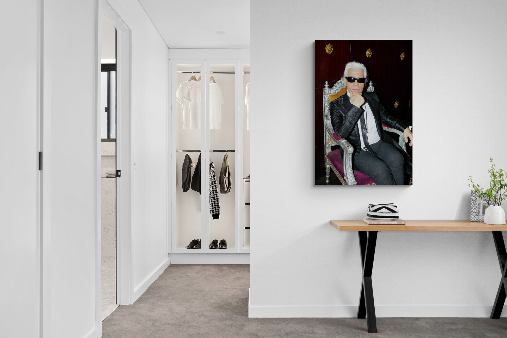 Plongez dans l'univers de la haute couture avec cette image de Karl Lagerfeld, le maître incontesté de la mode, prise lors d'une soirée au VIP à Paris en 2004. Installé dans un fauteuil, Lagerfeld dégage une aura de pouvoir et d'élégance, incarnant parfaitement son statut d'icône indétrônable de l'industrie.