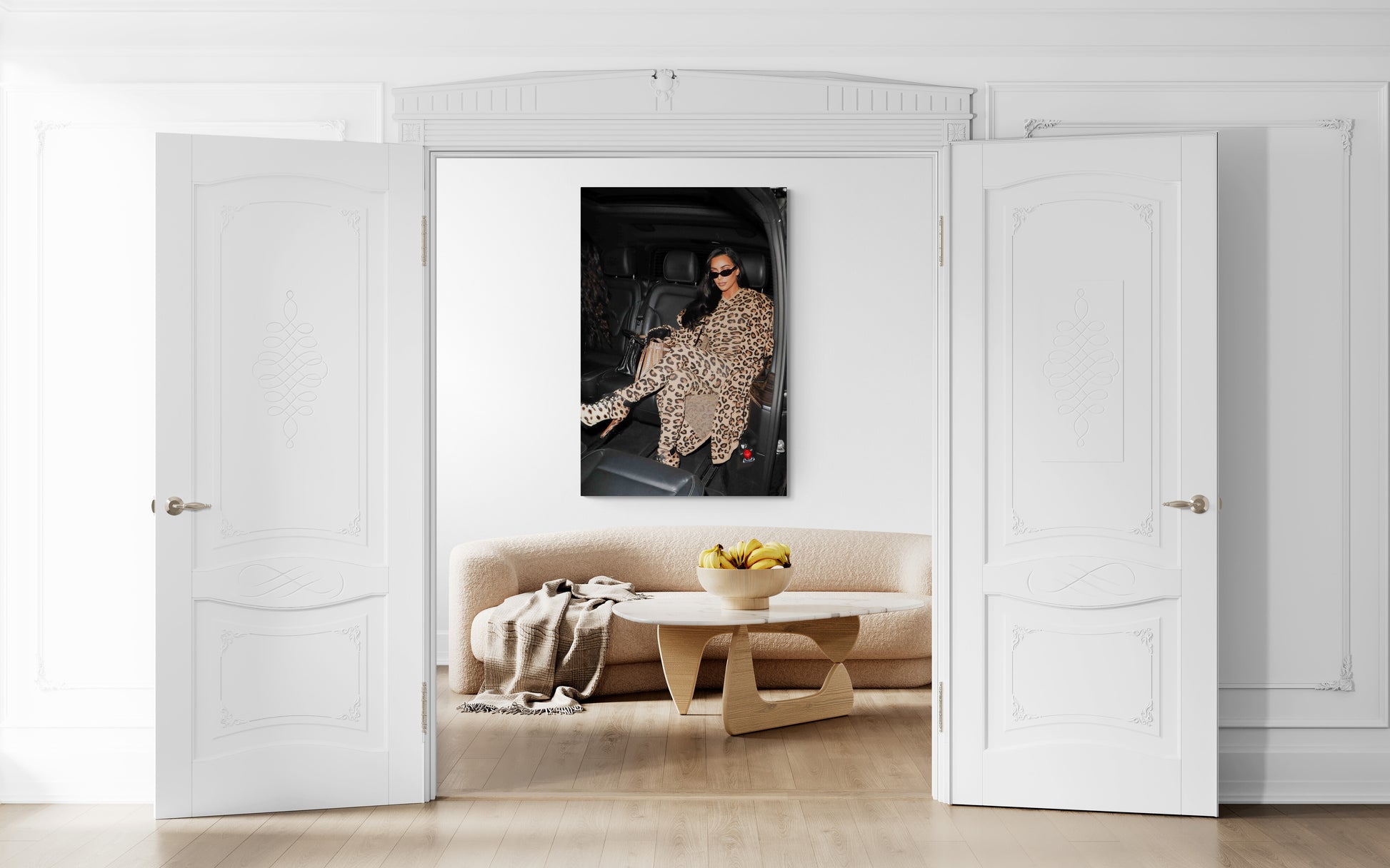 Kim Kardashian offre un instantané de glamour à la Fashion Week de Paris en 2019. Vêtue de léopard de la tête aux pieds, elle incarne un style audacieux et moderne. Cette image, où la tendance s'allie à l'intimité d'un moment volé, pourrait devenir un élément décoratif, ajoutant une touche d'audace à un espace contemporain.