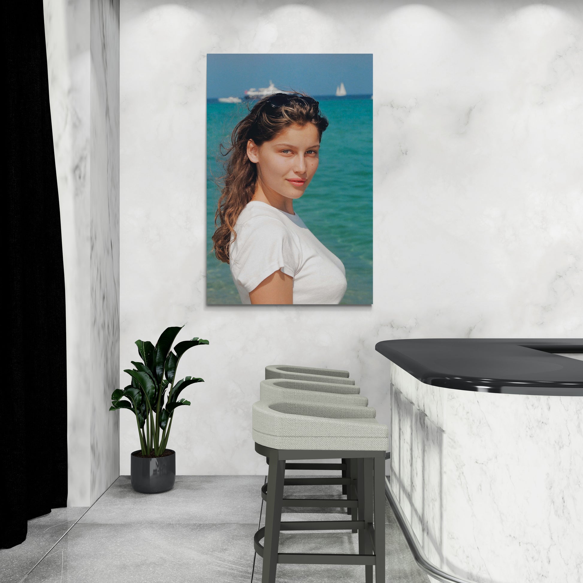Cette photo de Laetitia Casta à Saint-Tropez en 1997, prise par Daniel Angeli, montre son charme naturel et prometteur. Elle est parfaite pour ajouter une touche d'élégance et de jeunesse à tout espace décoratif.