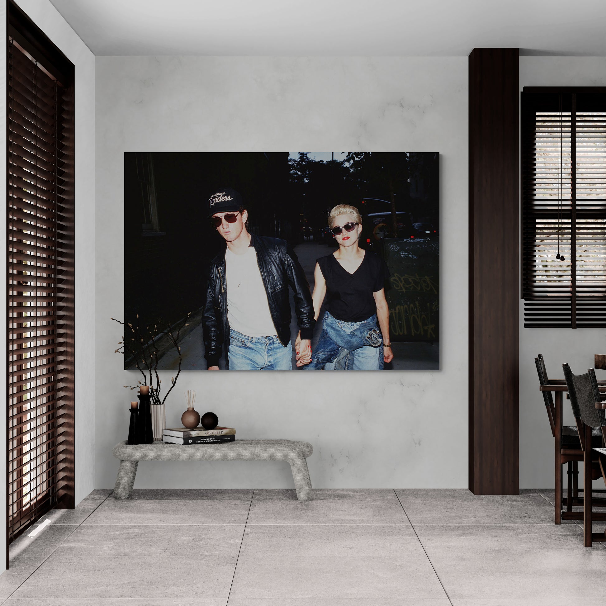 Madonna et Sean Penn main dans la main dans les rues de New-York en 1987. La photo évoque toute une époque où la rébellion et le glamour se confondaient harmonieusement. Elle apporterait une dose d'audace et de charme à n'importe quel intérieur.