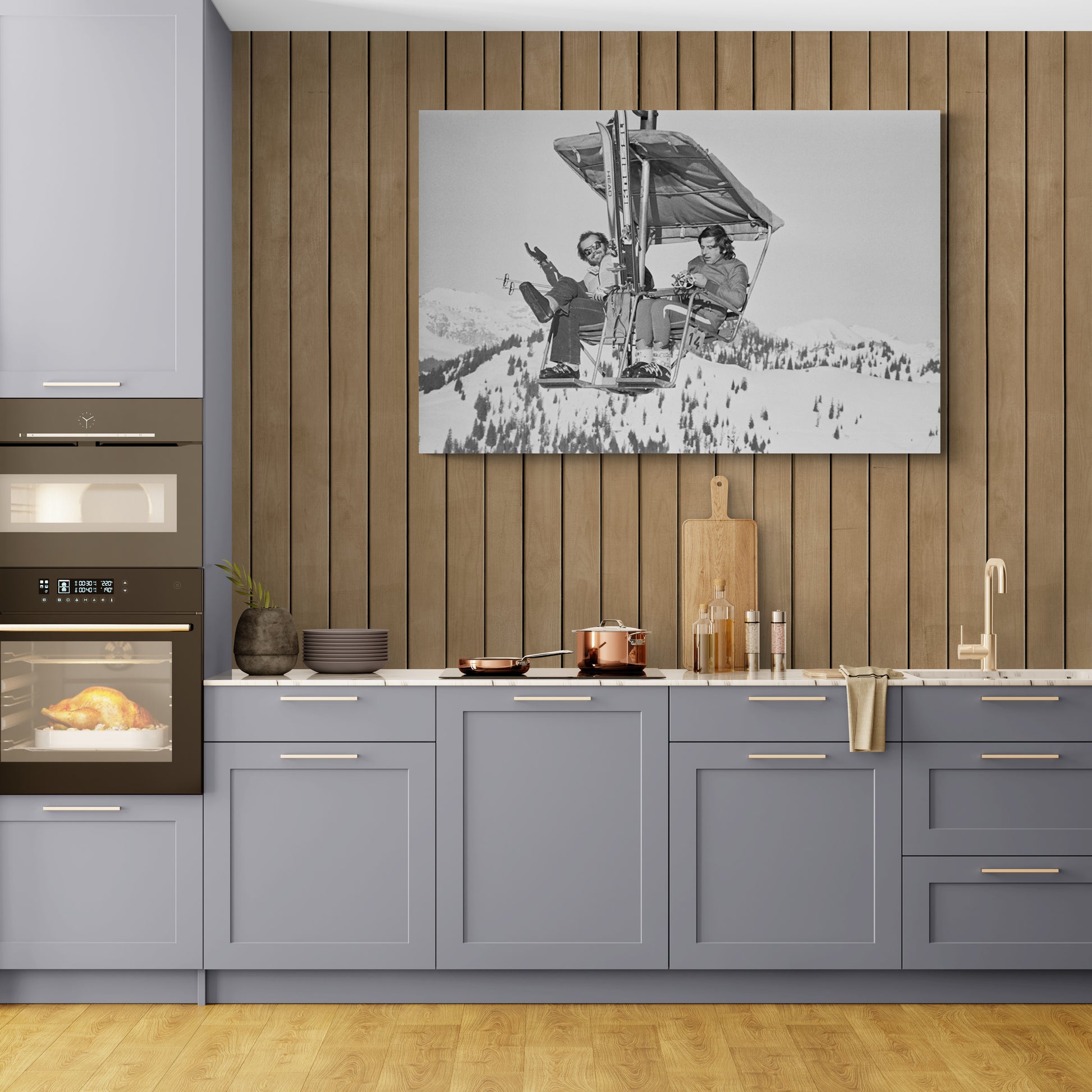 Jack Nicholson et Roman Polanski sur un télésiège à Gstaad en 1975. La station suisse de Gstaad était un lieu de rassemblement hivernal pour les célébrités, et le photographe Daniel Angeli passait ses hivers à immortaliser ces rencontres. Ce qui donnait souvent lieu à des images aussi insolites que celle-ci.