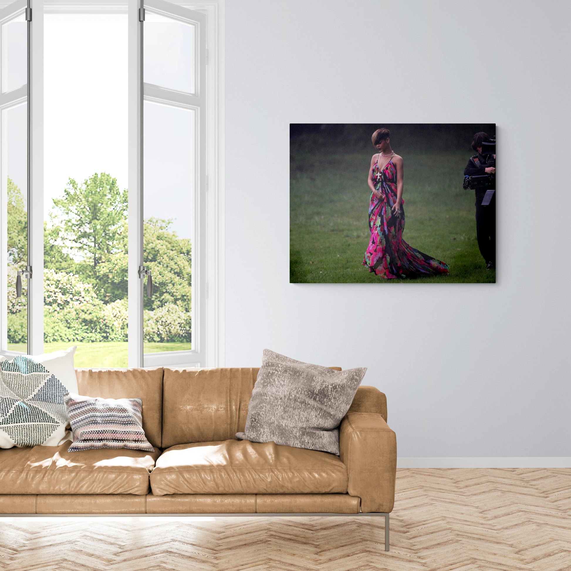Dans cette scène de tournage d'un clip vidéo en 2010, Rihanna est une vision de couleur et de mouvement, même sous un ciel brumeux de banlieue parisienne. Ce moment de grâce, apporte vie et énergie à un intérieur, ajoutant une touche de créativité artistique et un pop de couleur qui pourrait illuminer et inspirer n'importe quelle pièce.