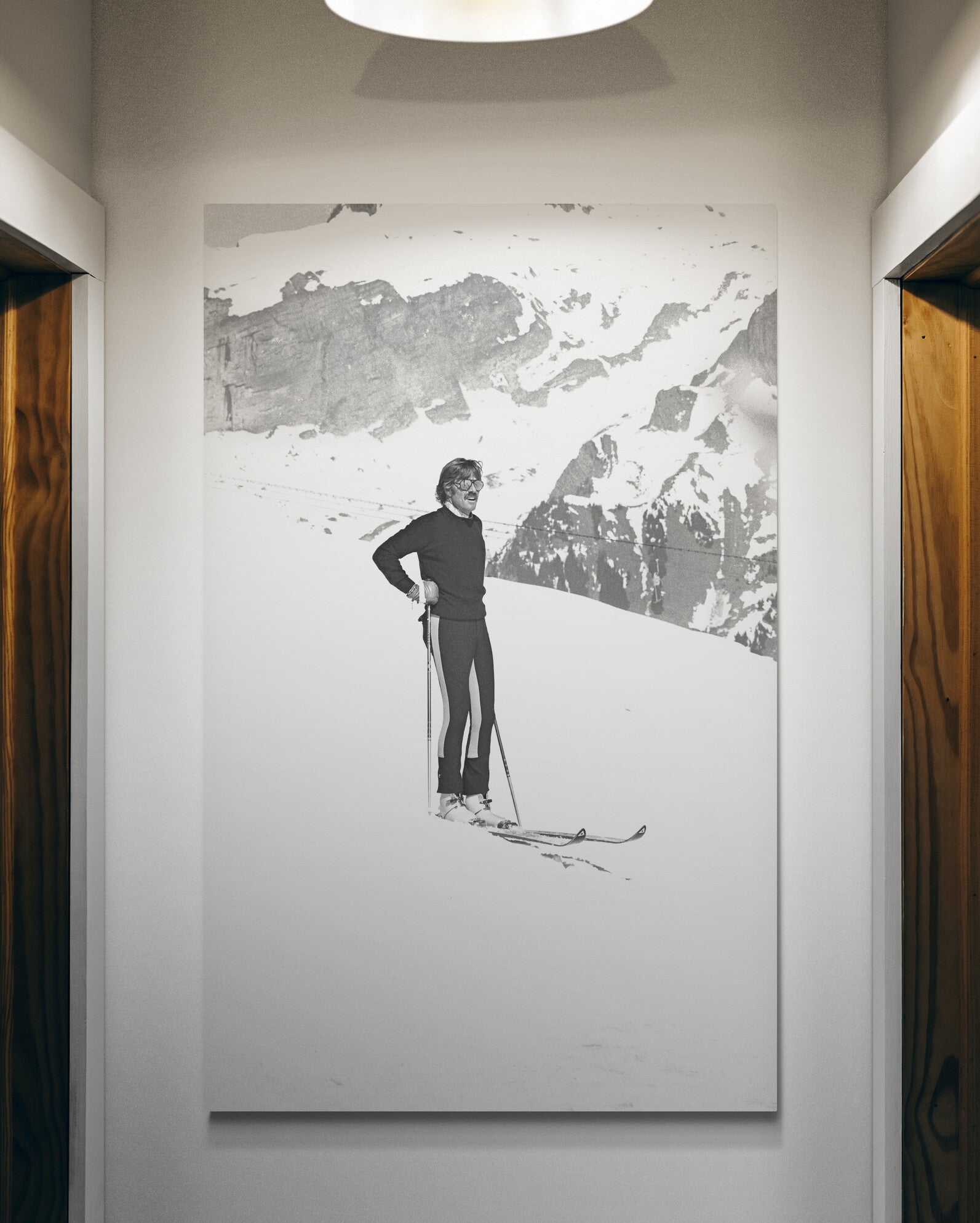 Cette photo noir et blanc, capturée par Daniel Angeli en 1977, montre l'icône Robert Redford sur les pistes de ski, incarnant une élégance naturelle. Son assurance et son style intemporel rendent cette image parfaite comme élément de décoration sophistiqué, ajoutant une touche de charisme et de grâce vintage à tout espace.