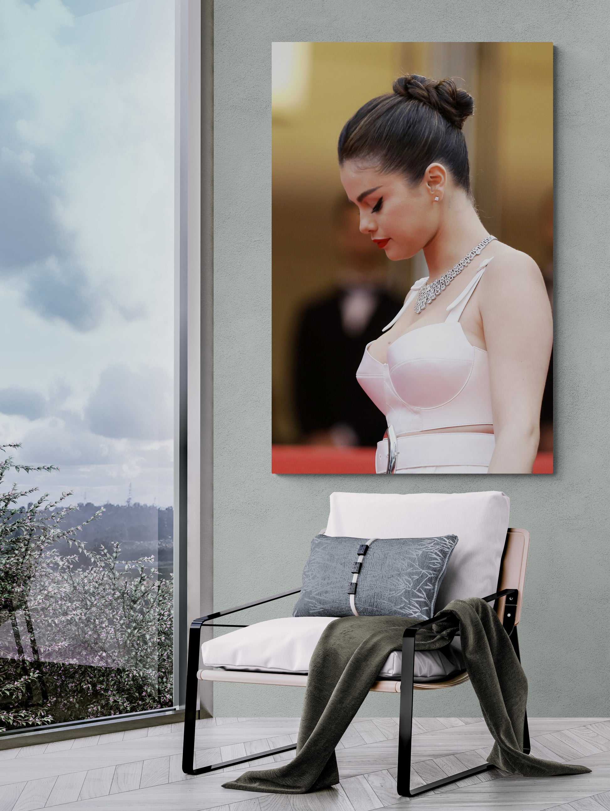 Selena Gomez adresse un baiser à ses admirateurs depuis l'intimité d'une voiture à la sortie de l’hôtel Carlton pendant le 72ème Festival International du Film de Cannes. Un véritable instantané de vie, cette photographie est idéale pour apporter une touche de grâce et de caractère à un intérieur contemporain ou classique.